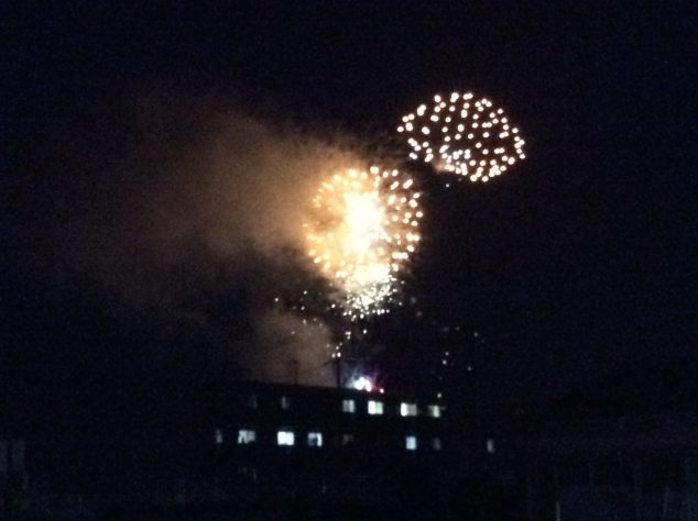 はま寿し終了後、その日はたまたま宇部の花火大会が開催されており、建物の隙間から花火を眺めつつ、夏の夜の雰囲気を味わった我が家でした。