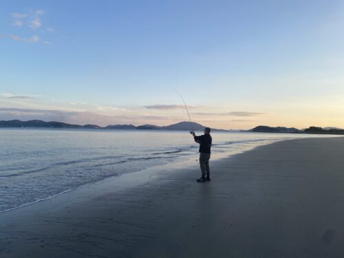 やっぱりいいですね。早朝の投げ釣り。天気も最高で風もなし。波もなし。