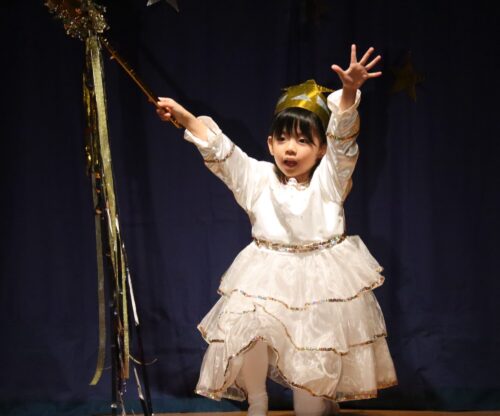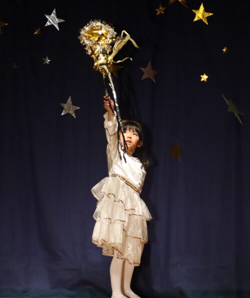 娘が選んだのは「大きな星」。個人的には主役級のマリア様になって欲しいなって思ってたけど、このお星様の役所も結構重要で、しかもソロで踊り、一人でセリフを話すという、ものすごい役回り。