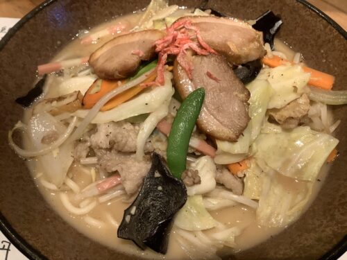 もう一つは、デブおじさんの聖地「ドライブイン南国」の野菜マシマシちゃんぽんです。ここのちゃんぽんは結構有名で、昔からある地元の味って感じで、とても懐かしい味のするちゃんぽんです。その中でもこの野菜マシマシが好きで、よく注文します。運んでくるおばちゃんが「絶対このちゃんぽんってスープが溢れるのよ」って怒っていますが、それって容器の工夫でどうにかなるのでは?っていつも思ってます。でもこのこぼすのも南国の「味」です。