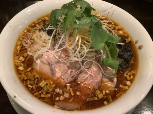 この前行った時、「パクチー追加のせ」を発見し、パクチー好きな私は当然追加料金を払ってパクチー上乗せ。この写真は追加してない方だと思います。
