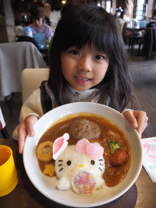 「キティーちゃんが消えていく!」って二人で大はしゃぎしながら食べました。とっても楽しいランチタイムでした。