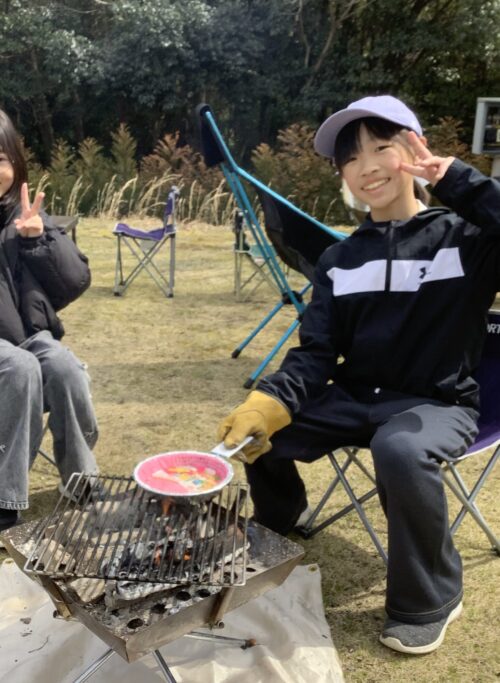 この日は次女の習い事があり長女とその友人と先にキャンプ場入りしました。椅子を並べたり、一緒に火を起こしたり、妻が前日に仕込んでくれたバターチキンカレーを温めたり、女性陣二人(小学4年生)が大活躍してくれました。