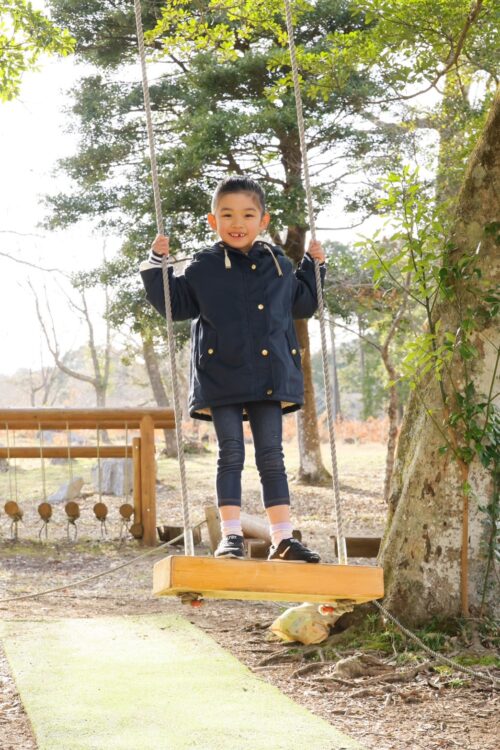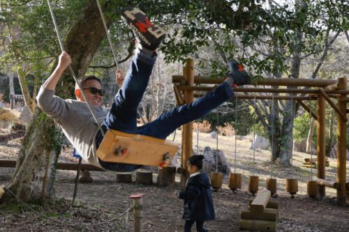 このブランコは紐がものすごい長いので、本気で漕げばものすごい高さまで登ります。まさにハイジのブランコって感じです。