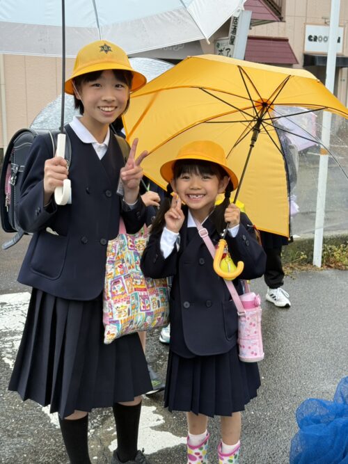 まだまだ我が家の子育ては続きます。初めての集団投稿から雨模様でしたが、登校班の班長は我が長女。しっかり者のお姉ちゃんだからこちらも安心です。